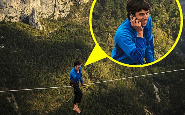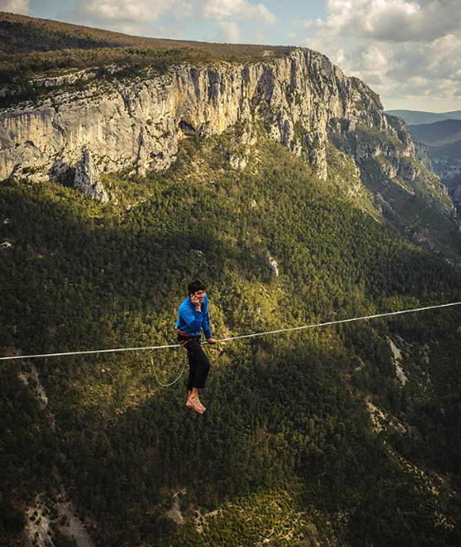 Για την ακρίβεια ο Tancrede περπατούσε επάνω σε ένα σχοινί μήκους 20 μέτρων που ένωνε δύο βραχώδεις κορυφές στην περιοχή Dalles Grises στο Verdon Gorges της Γαλλίας, την ώρα που χτύπησε το τηλέφωνό του.