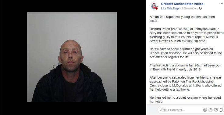 Εδώ και μήνες οι αρχές του Μάντσεστερ αναζητούσαν τον Richard Paton, τον οποίο είχαν καταγγείλει δυο νεαρές γυναίκες για βιασμό.