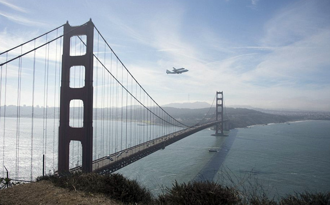 Την τελευταία του «βόλτα» έκανε την περασμένη Παρασκευή το διαστημικό σκάφος Endeavour που πέταξε πάνω από τους λόφους του Hollywood και τη γέφυρα Golden Gate στο San Francisco πριν τελικά οδηγηθεί για… συνταξιοδότηση στο μουσείο.