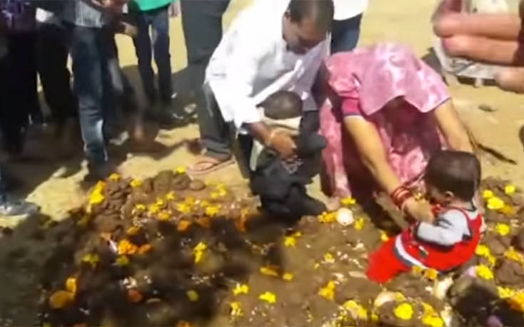 Βάζουν μικρά παιδιά που κλαίνε να κάτσουν πάνω σε κόπρανα αγελάδας γιατί θεωρούν ότι έτσι είναι υγιή και προστατεύονται από ασθένειες.