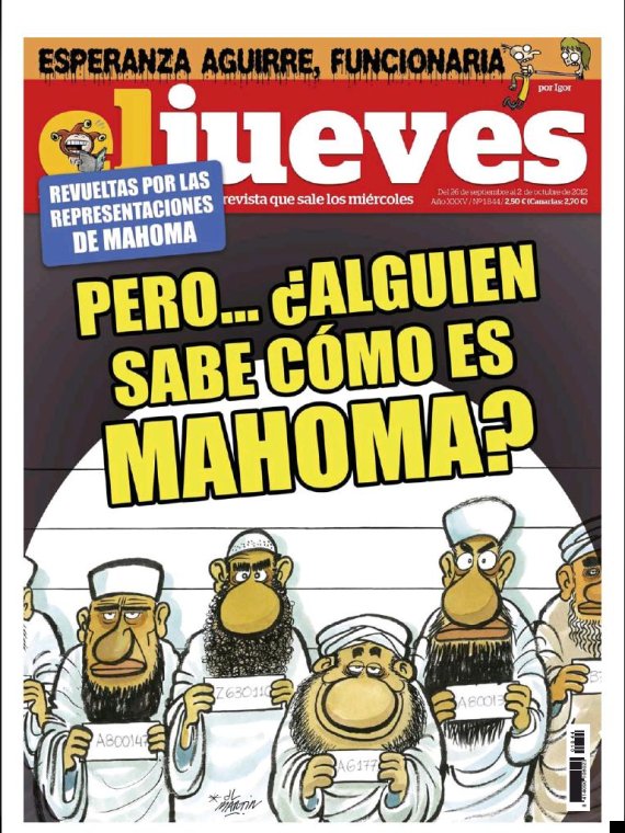 Μερικές ημέρες μετά τις βίαιες διαμαρτυρίες που συγκλόνισαν τον μουσουλμανικό κόσμο για την αντιισλαμική ταινία αμερικανικής παραγωγής και τη δημοσίευση από τη γαλλική εβδομαδιαία σατιρική εφημερίδα «Σαρλί Εμπντό» σκίτσων που κρίθηκαν προσβλητικά για το Ισλάμ, το ισπανικό περιοδικό πολιτικής σάτιρας «El Jueves» έδωσε συνέχεια στο τεύχος του που κυκλοφόρησε χθες στην υπόθεση του σκίτσου του προφήτη Μωάμεθ, με το εξώφυλλό του να έχει τον τίτλο: «Μα… ξέρει κανείς πώς είναι ο Μωάμεθ;».