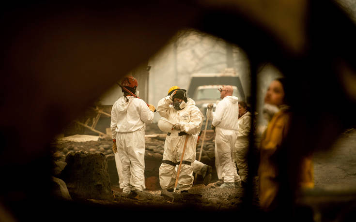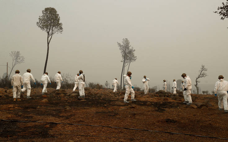 Μέλη της Εθνικής Φρουράς ένωσαν την Τετάρτη τις δυνάμεις τους με τα σωστικά συνεργεία που αναζητούν κάποιο ίχνος των ανθρώπων που αγνοούνται ή θυμάτων στις τεράστιες εκτάσεις της Καλιφόρνιας, που έχουν πια γίνει στάχτη.