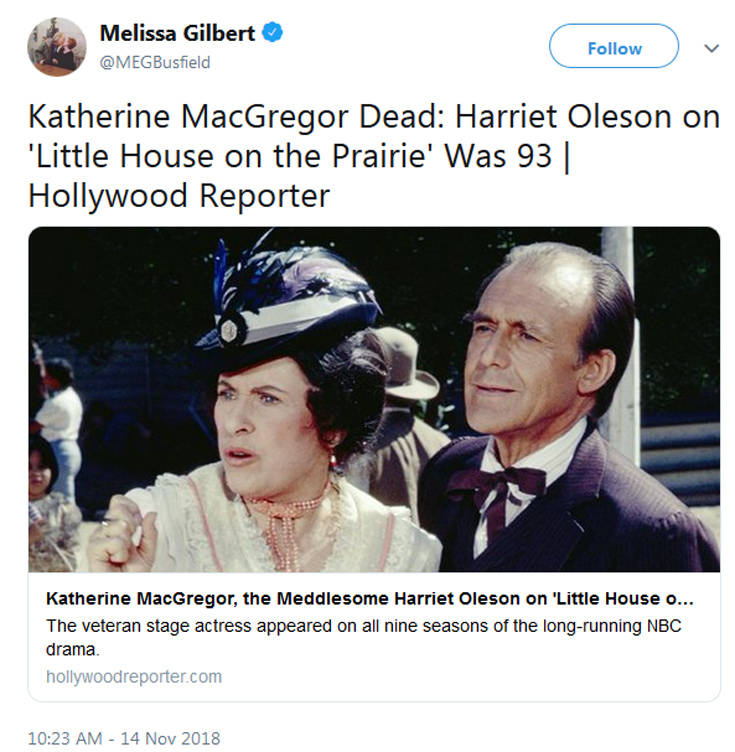 Όταν άκουσε το νέο του θανάτου της, η συμπρωταγωνίστριά της στη σειρά Μελίσα Γκίλμπερτ, γνωστή ως η Λόρα ‘Ινγκαλς της σειράς με τις μακριές κοτσίδες και τις φακίδες στο πρόσωπο, την ευχαρίστησε για ό,τι τη δίδαξε στο πέρασμα των χρόνων: «Μόλις έμαθα ότι η Κάθριν ΜακΓκρέγκορ έφυγε από τη ζωή. Αυτή η γυναίκα μου έμαθε τόσα πολλά για την υποκριτική και τη ζωή. Ήταν ειλικρινής και ξεκαρδιστικά αστεία. Μία πραγματικά χαρισματική ηθοποιός, καθώς μπορούσε να παίξει έναν τόσο απεχθή χαρακτήρα με όλη της την καρδιά. Η Χάριετ Όλσεν ήταν μια γυναίκα που οι τηλεθεατές μας λάτρευαν να μισούν. Αυτό που δεν ήξερε ο πολύς κόσμος είναι το πόσο τρυφερή και στοργική με τους νεότερους ηθοποιούς».