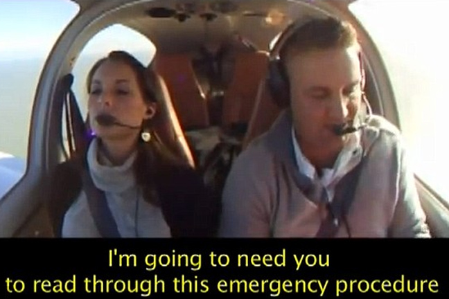 Στη μέση της πτήσης είπε στην κοπέλα πως χρειαζόταν τη βοήθειά της, να διαβάσει τις οδηγίες για τη διαχείριση της κατάστασης έκτακτης ανάγκης. «Γλυκιά μου, θέλω να διατηρήσεις την ψυχραιμία σου», ακούγεται να της λέει στο βίντεο.