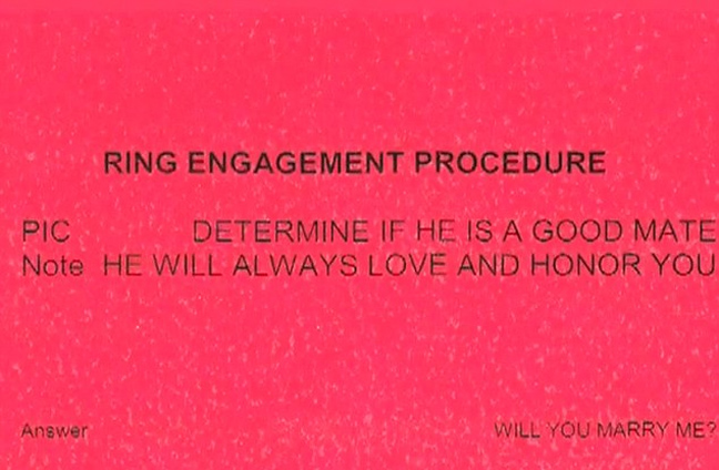 Τρομαγμένη η Carlie αρχίζει να διαβάζει το χαρτί που της έδωσε ο Thompson: «Η λίστα συμπληρώθηκε και τα δαχτυλίδια μπορούν να τοποθετηθούν. Για να αρχίσει η διαδικασία τοποθέτησης δαχτυλιδιών… θα με παντρευτείς;» διαβάζει και χρειάζεται μερικά δευτερόλεπτα για να συνειδητοποιήσει πως δεν πέφτει το αεροπλάνο αλλά ο σύντροφός της τής κάνει πρόταση γάμου.