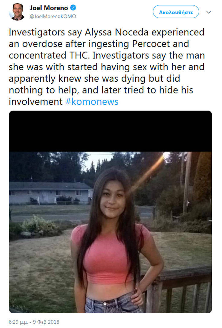 Τον Φεβρουάριο του 2018 σε ένα πάρτι στο προάστιο του Λίνγουντ στο Σιάτλ, ο Brian Varela έδωσε ένα θανάσιμο κοκτέιλ παυσίπονων στην 18χρονη κοπέλα και εν συνεχεία τη βίασε καθώς ψυχορραγούσε από overdose. Αντί να καλέσει βοήθεια, έστελνε μηνύματα και φωτογραφίες της στους φίλους της, την ώρα που κείτονταν γυμνή στο πάτωμα και χαροπάλευε…