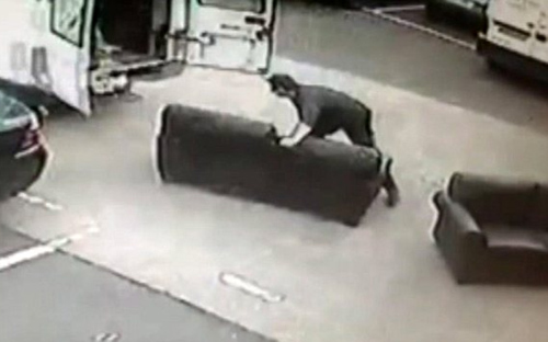 Η κάμερα παρακολούθησης της έκθεσης επίπλων κατέγραψε το με έναν τρόπο ξεκαρδιστικό περιστατικό: πρώτα οι κλέφτες να φορτώνουν δύο καναπέδες αξίας 1.000 ευρώ στο φορτηγό, να βάζουν μπροστά χωρίς να έχουν κλείσει τις πόρτες, ο υπάλληλος στη συνέχεια να τους τραβά έξω από το όχημα και τελικά οι κλέφτες να φεύγουν με άδεια χέρια- ή μάλλον άδειο φορτηγό!