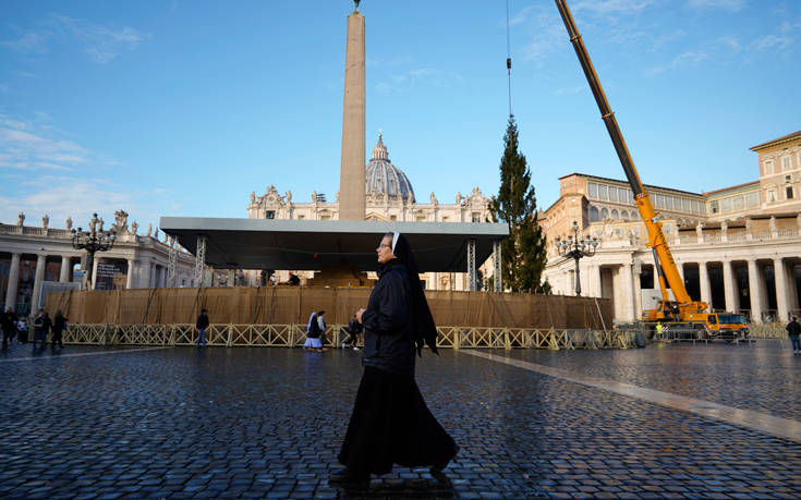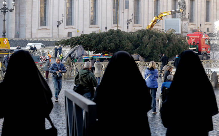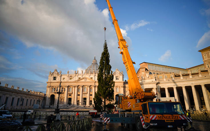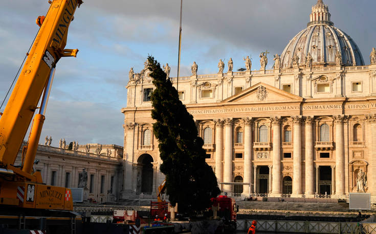 Ένα έλατο από δάσος της βορειοανατολικής Ιταλίας τοποθετήθηκε σήμερα στην πλατεία του Αγίου Πέτρου στη Ρώμη. Αργότερα θα το στολίσουν και θα μεταμορφωθεί στο παραδοσιακό χριστουγεννιάτικο δέντρο που θα δεσπόζει στο Βατικανό την περίοδο των εορτών.