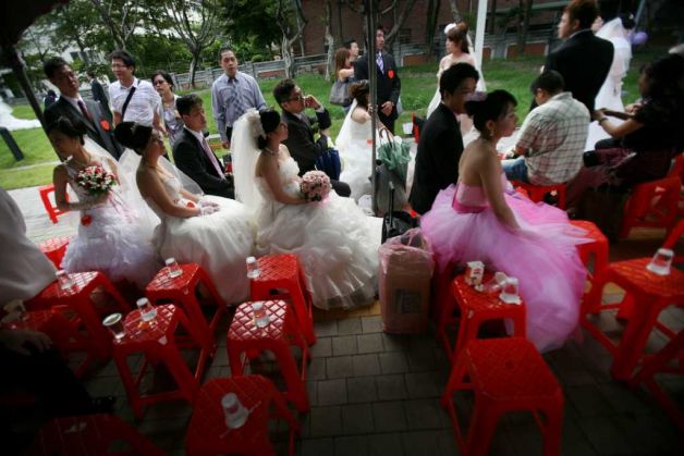 Πάνω από έξι χιλιάδες ζευγάρια Ταϊβανέζοι παντρεύτηκαν σήμερα πιστεύοντας ότι είναι μια τυχερή ημερομηνία για τη ζωή τους, αφού περιλαμβάνει δύο εννιάρια που είναι για αυτούς ένας αριθμός που φέρνει τύχη και ευτυχία.