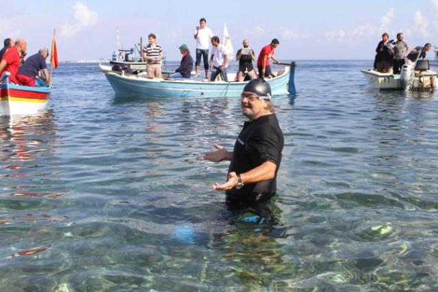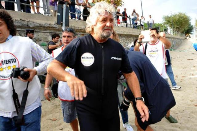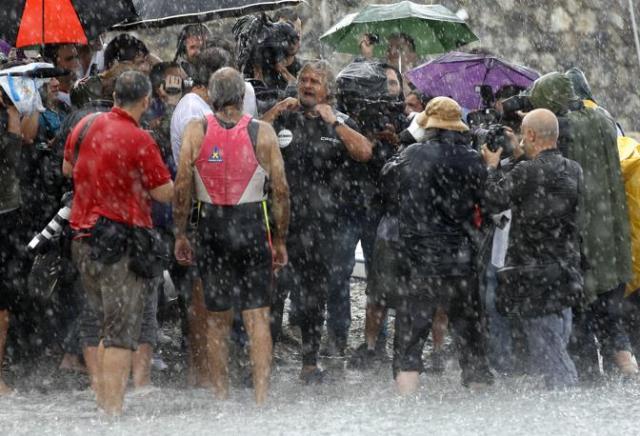 Ο ιταλός κωμικός και μπλόγκερ, Μπέπε Γκρίλο, διέσχισε σήμερα κολυμπώντας τα στενά της Μεσσήνης για να υποστηρίξει τους υποψήφιους του κόμματός του στις περιφερειακές εκλογές της Σικελίας.