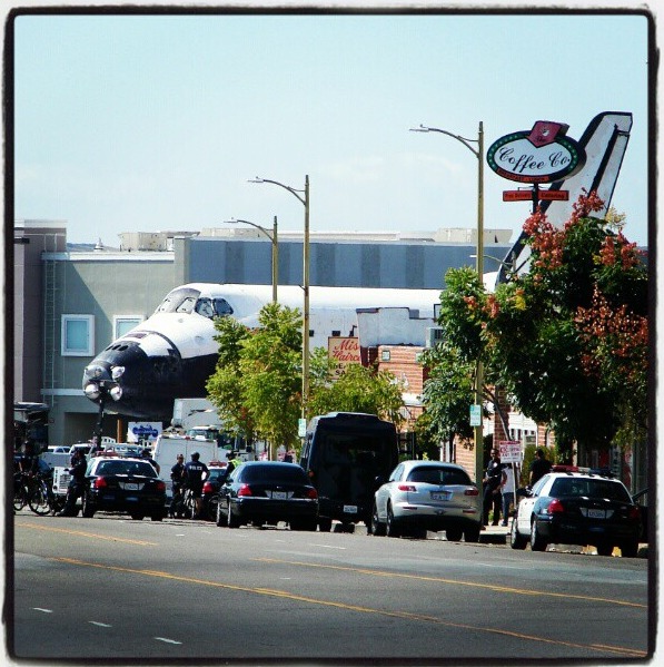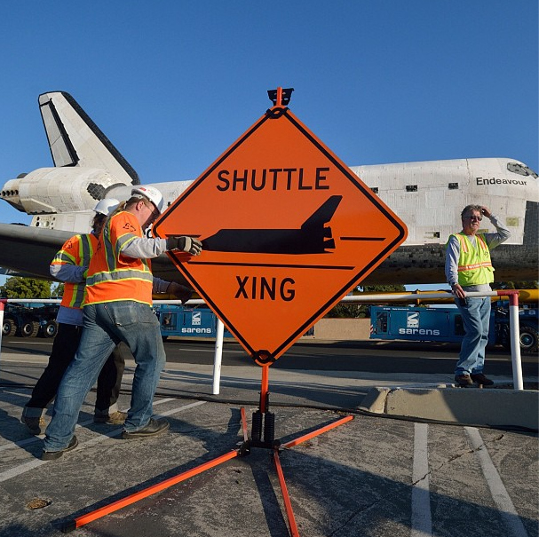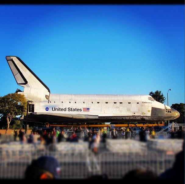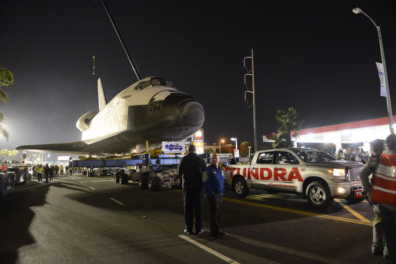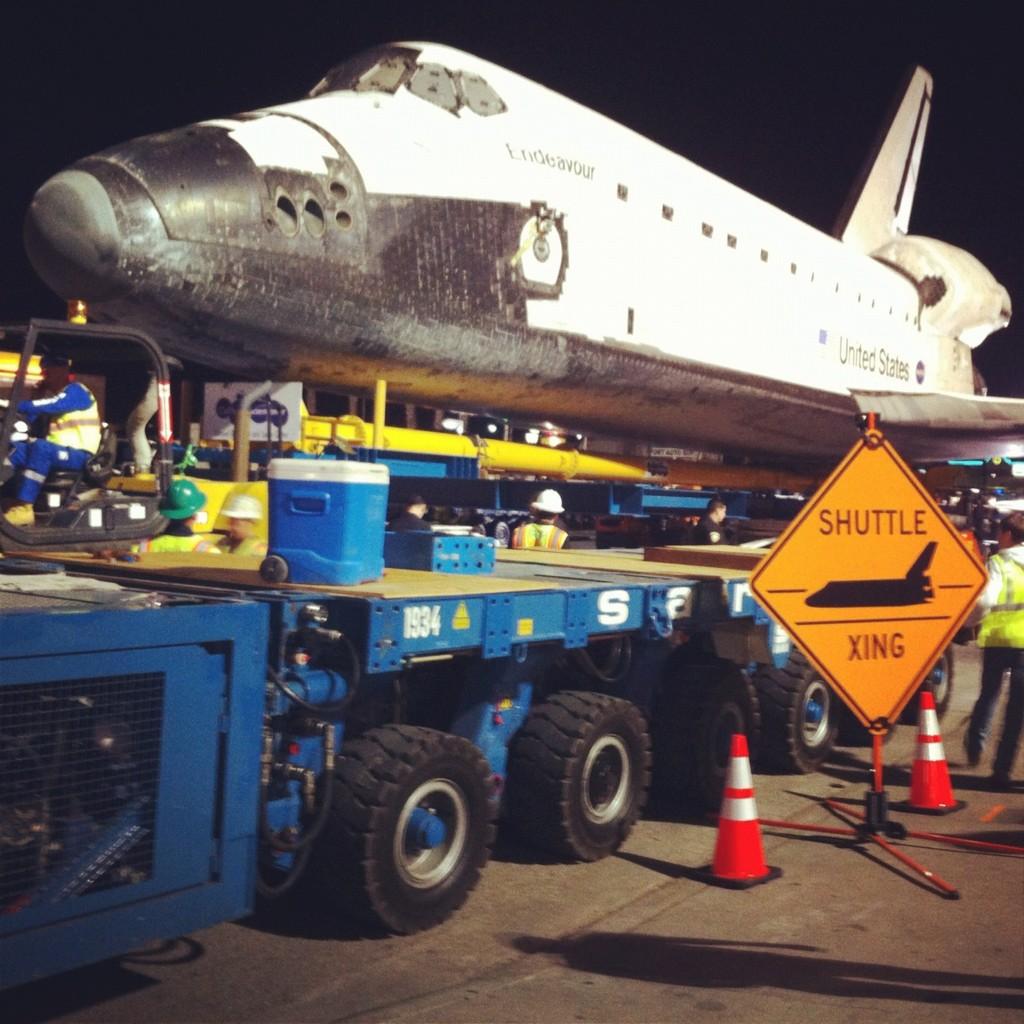 Αφού διέσχισε τις ΗΠΑ στη ράχη ενός ειδικού Τζάμπο Τζετ, το Endeavour έκανε μία μεγαλειώδη βόλτα και στους δρόμους του Λος Άντζελες.