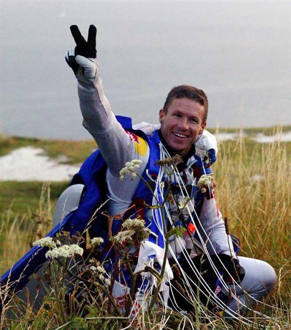 Το αλεξίπτωτό του άνοιξε κανονικά στα 1.500 μ.από το έδαφος και ο Αυστριακός προσγειώθηκε υπό τις επευφημίες των συνεργατών και των συγγενών του που παρακολουθούσαν με αγωνία.