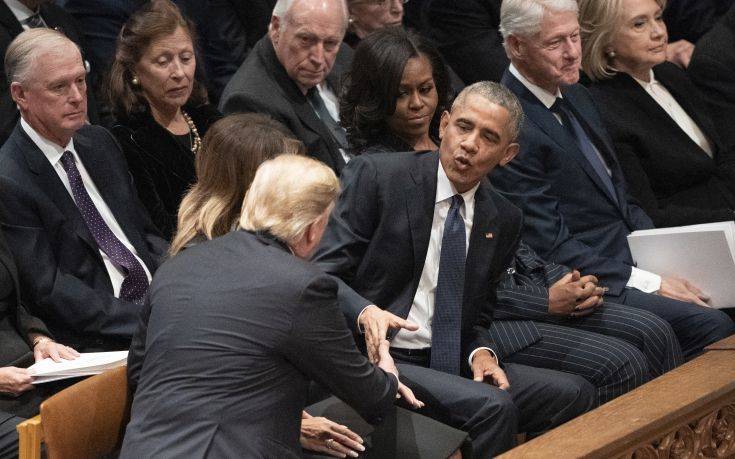 Ντόναλντ Τραμπ και Μπαράκ Ομπάμα αντήλλαξαν την πρώτη χειραψία τους από τότε που ο πρώτος διαδέχθηκε τον δεύτερο στην εξουσία, στις 20 Ιανουαρίου του 2017, όπως μεταδίδουν το Γαλλικό Πρακτορείο και το Reuters και αναμεταδίδει το Αθηναϊκό Πρακτορείο Ειδήσεων.