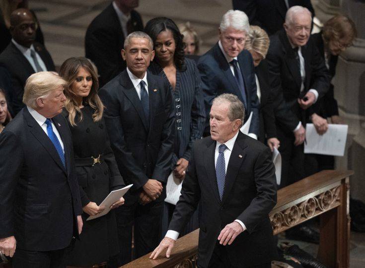 Ο Ντόναλντ Τραμπ και τέσσερις πρώην πρόεδροι των ΗΠΑ παρέστησαν σήμερα στην κηδεία, με τιμές αρχηγού κράτους, του Τζορτζ Χέρμπερτ Ουόκερ Μπους, μια σπάνια στιγμή ενότητας σε μια διχασμένη χώρα.