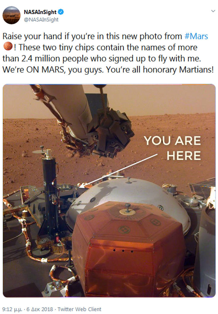 — NASAInSight (@NASAInSight) December 5, 2018