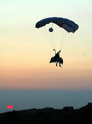Είχε μάλιστα αναγκαστεί να κόψει το αλεξίπτωτό του επειδή όταν άνοιξε μπλέχτηκε στο πόδι του. Είχε βέβαια εφεδρικό.