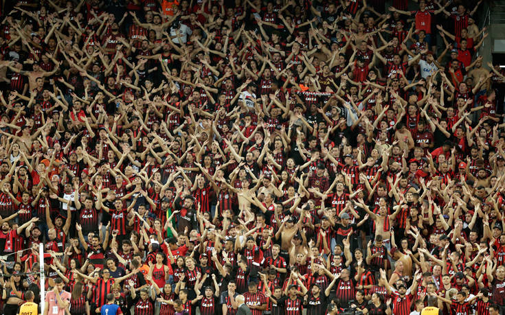 Οι οπαδοί της βραζιλιάνικης Atletico Paranaense τα δίνουν όλα στην εξέδρα λίγο πριν από του Copa Sudamericana.