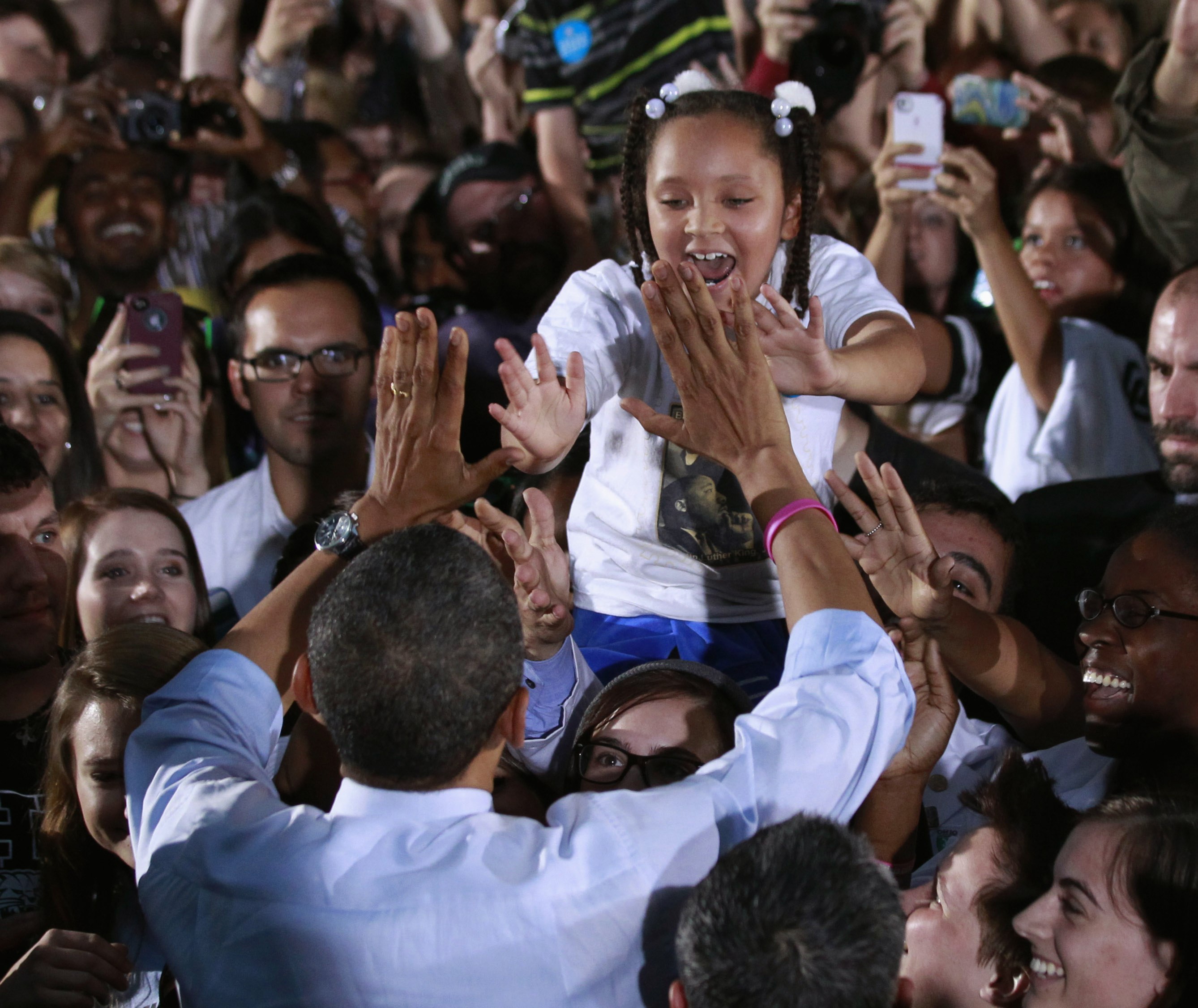 Σε συγκέντρωση που είχε χθες στο Πανεπιστήμιο του Οχάιο, στα πλαίσια της προεκλογικής του καμπάνιας, ο πρόεδρος των ΗΠΑ έκανε high-fives με μία νεαρή, δείχνοντας με αυτόν τον τρόπο την ψυχολογία του μετά τη δεύτερη τηλεμαχία που είχε με τον Μιτ Ρόμνει.