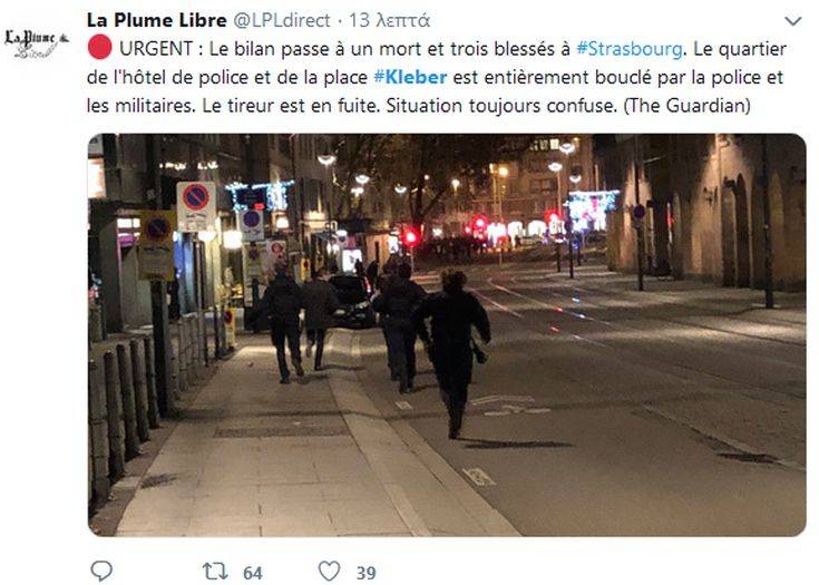 Ο δήμος του Στρασβούργου κάλεσε τους πολίτες να παραμείνουν στα σπίτια τους. Οι αρχές κάλεσαν επίσης μέσω του Twitter τον κόσμο να μην διαδίδει ψευδείς φήμες, να παραμείνει ψύχραιμος και να ενημερώνεται μόνο από επίσημες πηγές.