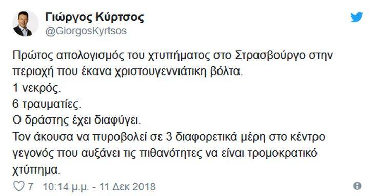 Δύο άνθρωποι σκοτώθηκαν και άλλοι δέκα τραυματίστηκαν από πυροβολισμούς απόψε στο κέντρο του Στρασβούργου, κοντά στη χριστουγεννιάτικη αγορά της πόλης, που προσελκύει εκατομμύρια τουρίστες κάθε χρόνο.