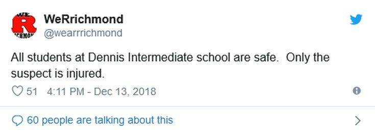 Οι πρώτες πληροφορίες αναφέρουν ότι όλοι οι μαθητές του σχολείου «Dennis Intermediate School» είναι ασφαλείς.