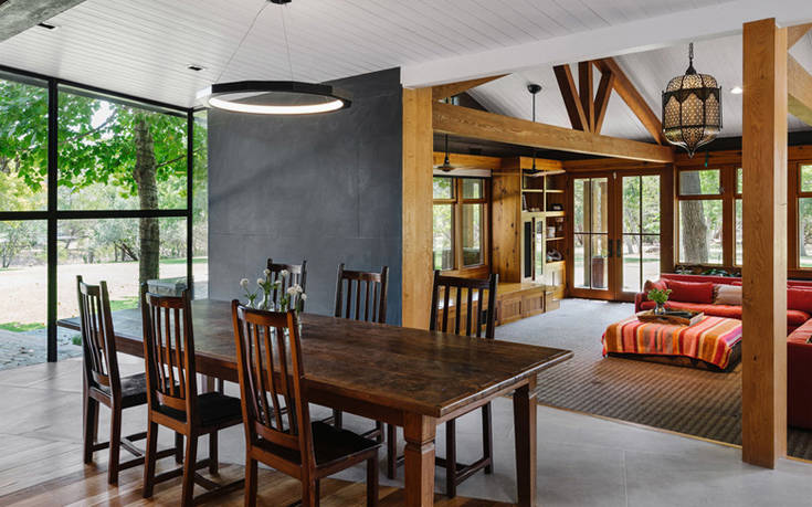 Τη ριζική ανακατασκευή του κτίσματος στο αγρόκτημα των 150 στρεμμάτων ανέλαβε η Root Design Company, που σεβάστηκε την κτηνοτροφική παράδοση της οικογένειας αλλά και την παράδοση της περιοχής στα ράντζα.