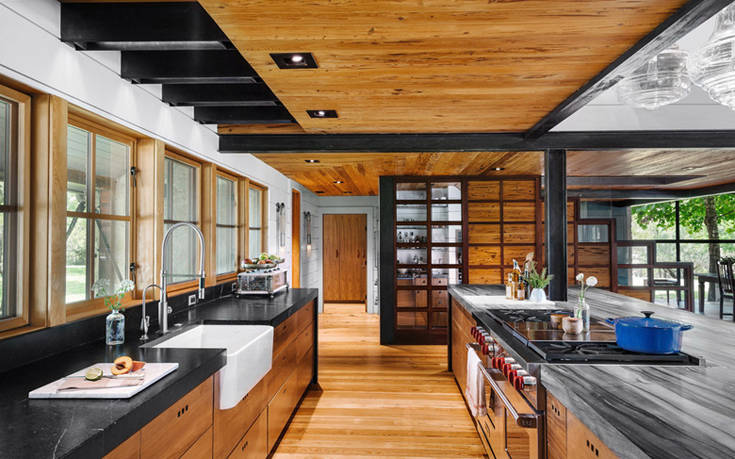 Η κατοικία συνδυάζει το ρουστίκ και το μοντέρνο, τόσο εσωτερικά όσο και εξωτερικά, μιας και η Root δεν παρέλειψε να βάλει το χεράκι της και στον περιβάλλοντα χώρο με γήπεδο τένις, λιμνούλα με ιαπωνικά ψάρια και πισίνα φυσικά…