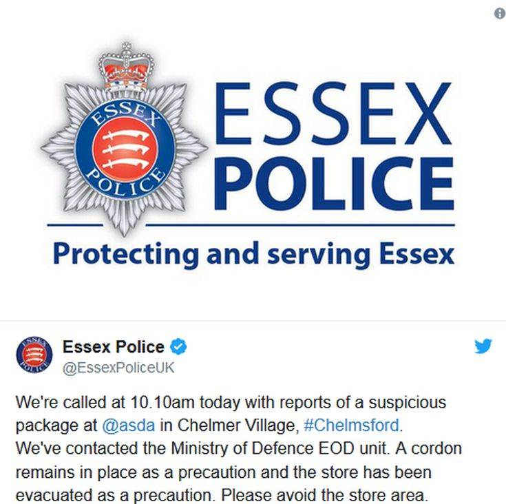 «Μια προστατευτική κορδέλα παραμένει στον χώρο προληπτικά και το κατάστημα εκκενώθηκε επίσης προληπτικά», ανακοίνωσε η αστυνομία του Έσεξ.