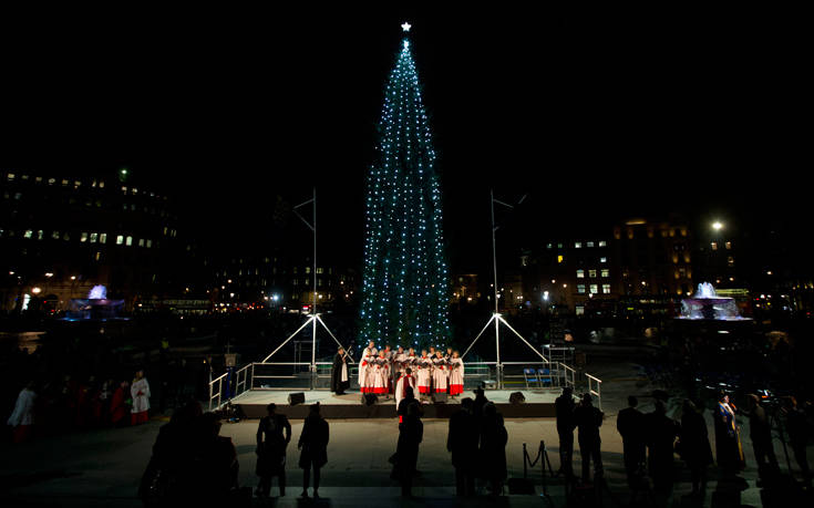 Διακοσμείται επιτόπου στην Πλατεία Τραφάλγκαρ με 500 λαμπιόνια, όπως επιτάσσει ο παραδοσιακός νορβηγικός στολισμός, την πρώτη Πέμπτη του Δεκεμβρίου μέσα σε πλήθος κόσμου.