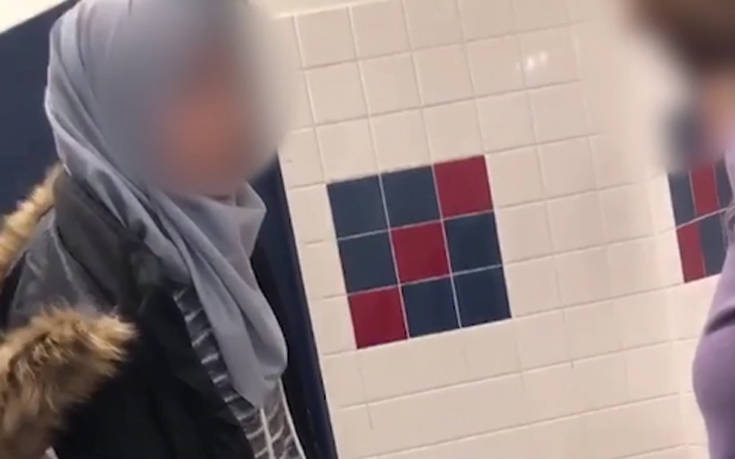 Απίστευτες σκηνές εκτυλίχθηκαν σε μια τουαλέτα σχολείου στο Μπρίτζβιλ της Πενσυλβάνια. Ένας απόφοιτος κατέγραψε με το κινητό του τηλέφωνο μια μαθήτρια να γρονθοκοπεί ανελέητα μια 14χρονη κοπέλα που φορά χιτζάμπ.