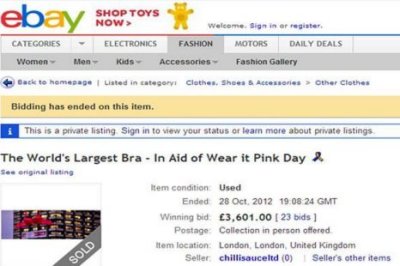 Πριν το τεράστιο αυτό σουτιέν η εταιρεία είχε ήδη αγοράσει, μια τούφα από τα μαλλιά του Justin Bieber, την πέτρα από τα νεφρά του William Shatner καθώς και ένα ψημένο σάντουιτς που θεωρούνταν ότι σχημάτιζε πάνω του την εικόνα της Παρθένου Μαρίας!