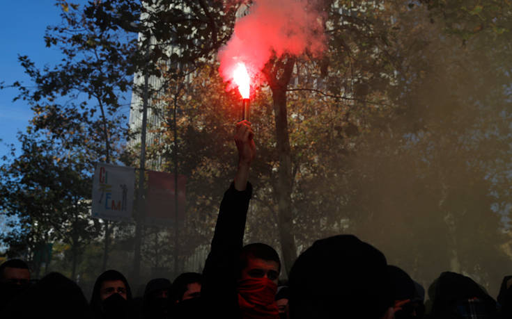Κάποιοι έκαψαν ένα πορτρέτο του βασιλιά Φίλιππου Στ΄, την ώρα που οι αστυνομικοί συγκρούονταν με νεαρούς κουκουλοφόρους.