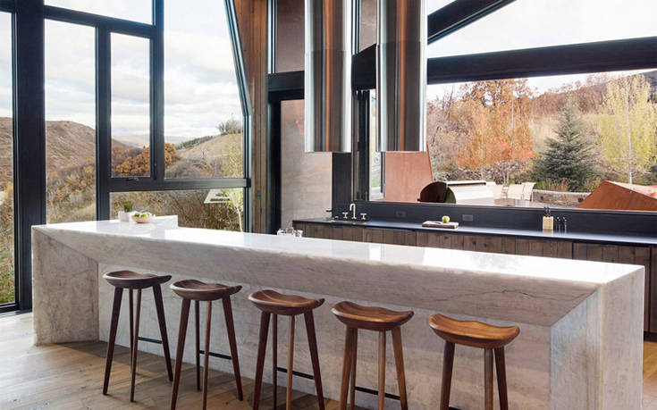 Το εντυπωσιακό σπίτι σχεδιάστηκε το 2015 ώστε να συνδέει τους ενοίκους τόσο με το μεγαλειώδες περιβάλλον όσο και μεταξύ τους, δίνοντας έμφαση στους κοινόχρηστους χώρους και τα μεγάλα ανοίγματα.