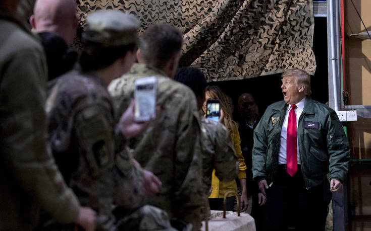 Ο Ντόναλντ Τραμπ μετέβη στο Ιράκ για μια αιφνιδιαστική επίσκεψη μερικών ωρών για να συναντήσει Αμερικανούς στρατιώτες και επωφελήθηκε απ’ αυτό το πρώτο ταξίδι του σε ζώνη συγκρούσεων μετά την εκλογή του, πριν από δύο χρόνια, για να δικαιολογήσει την απόφασή του να αποσύρει τα αμερικανικά στρατεύματα από τη Συρία.