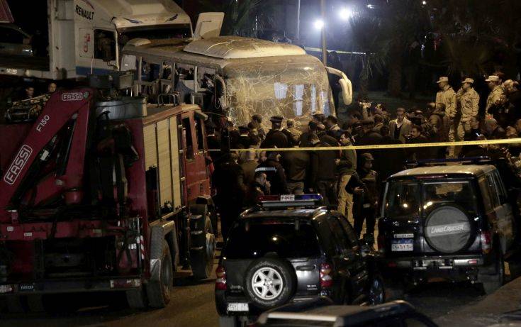 Δεκάδες αστυνομικοί και πυροσβέστες παρέμεναν στο σημείο, σε ένα στενό σοκάκι κοντά στον περιφερειακό δρόμο, σε μικρή απόσταση από τις Πυραμίδες της Γκίζας.