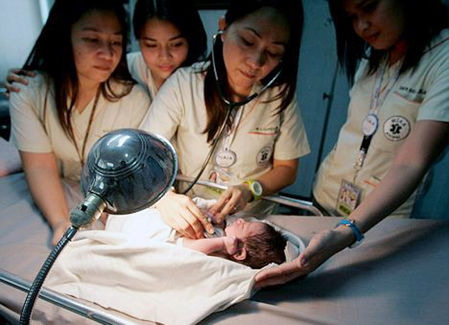 Το βρέφος ήταν τυλιγμένο με χαρτί και είχε ακόμη αίμα πάνω του όταν το βρήκαν τα συνεργεία καθαριότητας, δήλωσε η γιατρός Μαρία Τερέζα Αγκόρες, των ιατρικών υπηρεσιών του διεθνούς αεροδρομίου της Μανίλας Ninoy Aquino.