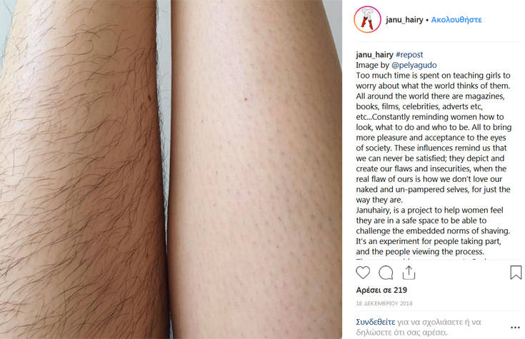 «Παρά το γεγονός ότι ένιωσα απελευθερωμένη και με μεγαλύτερη αυτοπεποίθηση, κάποιοι άνθρωποι γύρω μου δεν κατάλαβαν γιατί σταμάτησα να ξυρίζομαι, δεν συμφωνούσαν με αυτό. Και κατάλαβα πως υπάρχουν ακόμα πολλά που πρέπει να κάνουμε για να μπορούμε να αποδεχτούμε ο ένας τον άλλο πραγματικά».