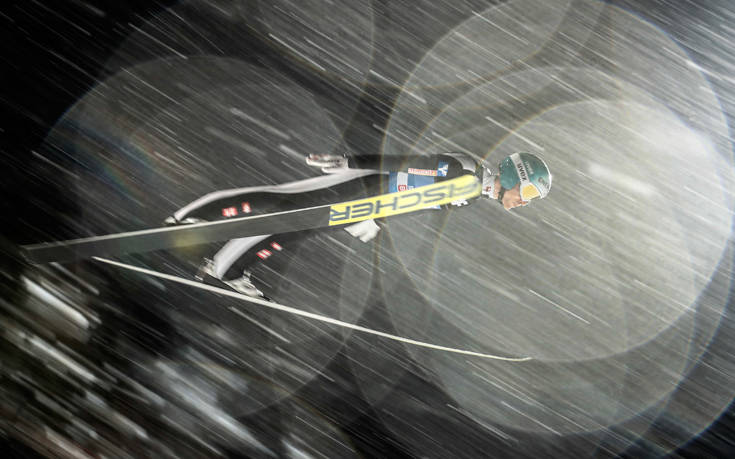 Ο Αυστριακός Michael Hayboeck επιχειρεί το πρώτο του άλμα σε διεθνές τουρνουά σκι στο Bischofshofen της Αυστρίας.