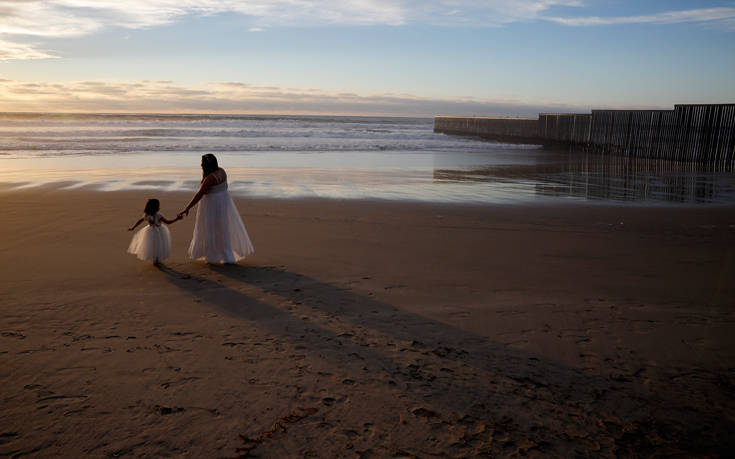 Έτοιμες για μία οικογενειακή φωτογραφία στα σύνορα Μεξικού – ΗΠΑ είναι η Ileze Dariel, μαζί με την κόρη της Jimena, στην Τιχουάνα.