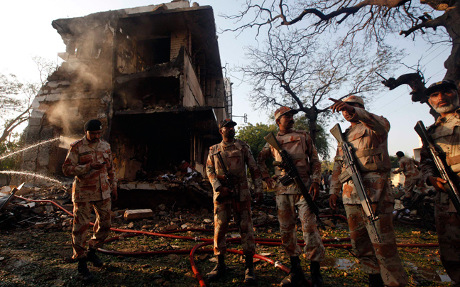Τουλάχιστον ένας νεκρός και 13 τραυματίες είναι ο απολογισμός της επίθεσης αυτοκτονίας που έγινε στο Καράτσι του Πακιστάν. Όχημα, παγιδευμένο με εκρηκτικά έπεσε πάνω στην πύλη στρατιωτικής βάσης αν και ο καμικάζι, ο οποίος χρησιμοποίησε 100 κιλά εκρηκτικής ύλης, δεν κατάφερε να μπει στη βάση.