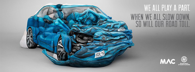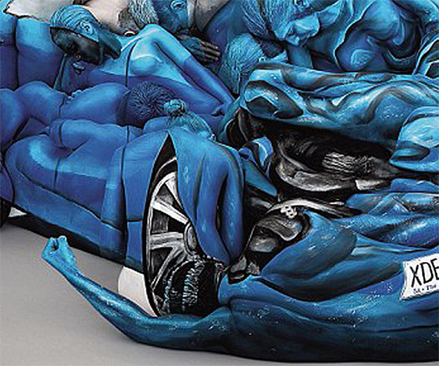 Το δημιούργημα της εικόνας είναι στην πραγματικότητα ανθρώπινα σώματα, τοποθετημένα έτσι, ώστε να μοιάζουν με τρακαρισμένο αυτοκίνητο.