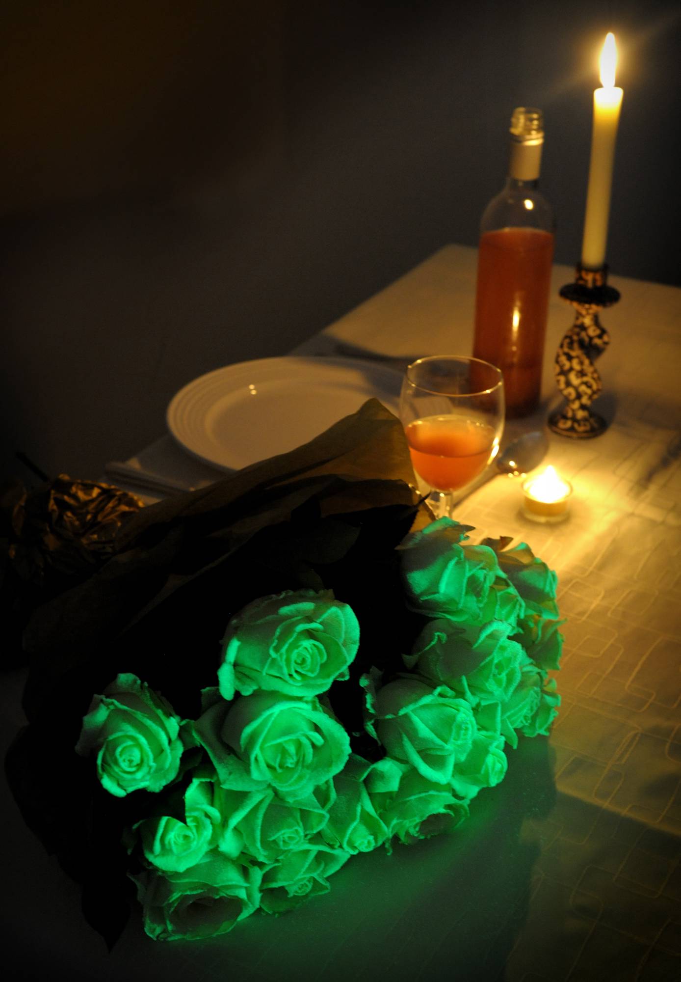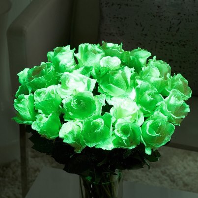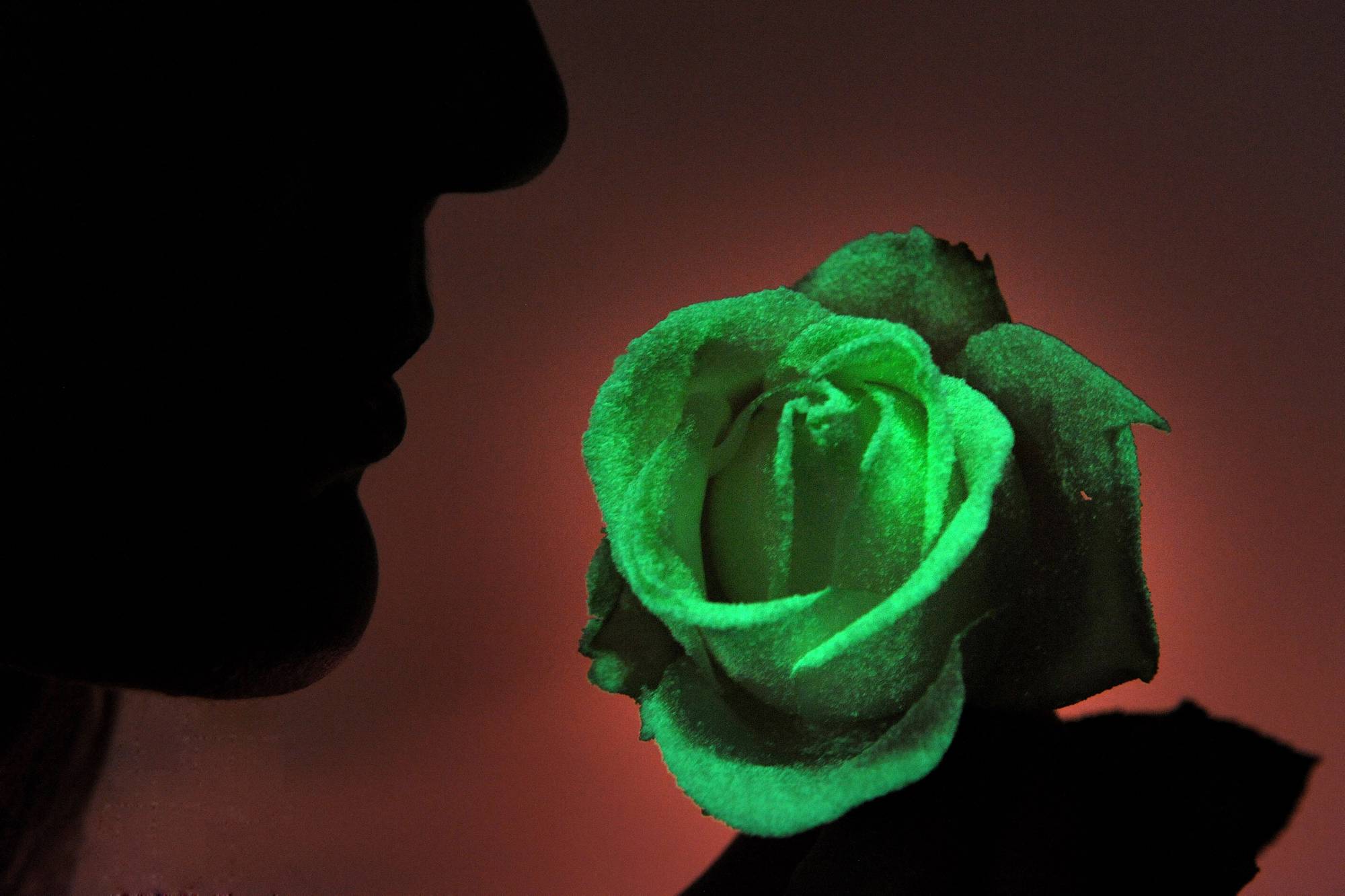 Στο φως της ημέρας, τα τριαντάφυλλα φαίνονται απολύτως κοινά, καθώς το χρώμα τους είναι ένα συνηθισμένο κρεμ… όταν όμως νυχτώνει και τα φώτα ανάβουν, αυτά απορροφούν το φως της λάμπας, ανεξαρτήτως έντασης, αποκτώντας ένα εντελώς διαφορετικό έντονο πράσινο χρώμα που λάμπει, το οποίο διατηρείται ακόμη και στο σκοτάδι.