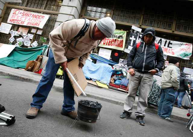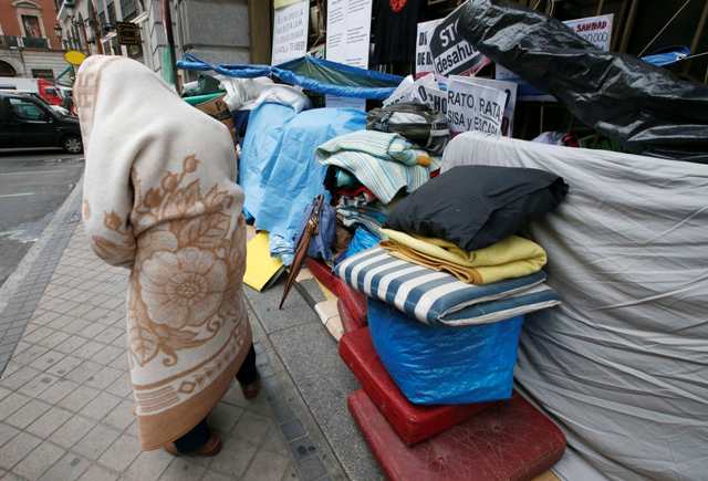 Δεκάδες άνθρωποι που κινδυνεύουν να χάσουν τα σπίτια τους έχουν κατασκηνώσει μπροστά από τα γραφεία της τράπεζας Bankia στη Μαδρίτη, μια από τις τράπεζες που έχει εκτεθεί περισσότερο στα στεγαστικά δάνεια.