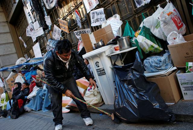 «Είμαστε εδώ επί δύο εβδομάδες», δήλωσε ο Φρέντι, 51 ετών. «Και δεν θα φύγουμε μέχρι η Bankia να διαπραγματευτεί μια λύση για το πρόβλημά μας».