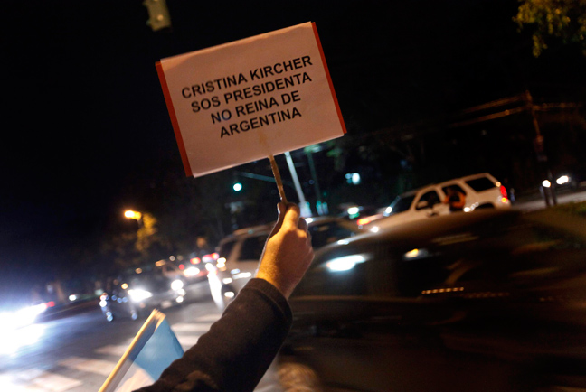 Η πρόεδρος Κριστίνα Κίρχνερ επανεξελέγη το 2011 με το 54% των ψήφων, όμως έκτοτε η δημοτικότητά έχει πάρει την «κάτω βόλτα» και βρίσκεται στο 30%.