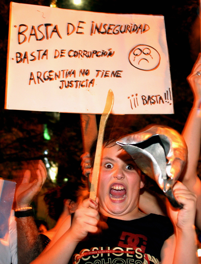 Στους δρόμους του Μπουένος Άιρες και άλλων μεγάλων πόλεων βγήκαν χθες εκατοντάδες χιλιάδες Αργεντινοί για να διαμαρτυρηθούν για την κυβέρνηση της Κριστίνα Φερνάντες Κίρχνερ, για τον καλπάζοντα πληθωρισμό, την αυξανόμενη εγκληματικότητα και τη διαφθορά.