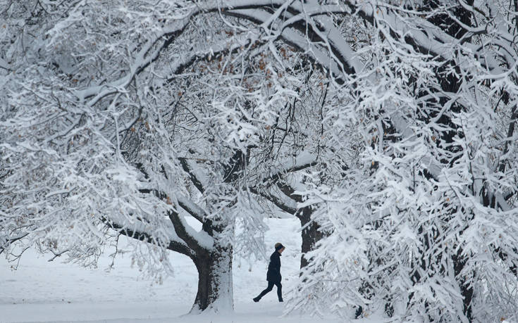 Ένας άνθρωπος απολαμβάνει την… παγωμένη βόλτα του στο Loose Park, στην πόλη του Κάνσας.