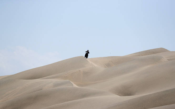 Ο Γάλλος Xavier De Soultrait της Γαλλίας δίνει τη δική του μάχη με τη Yamaha στο Ράλι Ντακάρ του Περού.