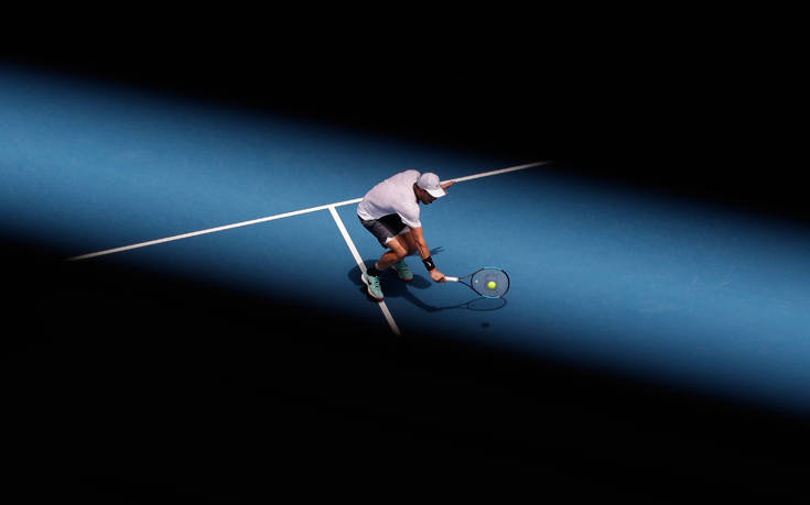 Το παιχνίδι του φακού την ώρα του backhand από τον Κροάτη Borna Coric, στο αυστραλιανό Όπεν στη Μελβούρνη.