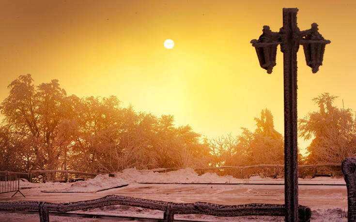 Φρανκφούρτη, Γερμανία. Ήλιος με…δόντια στο παγωμένο τοπίο